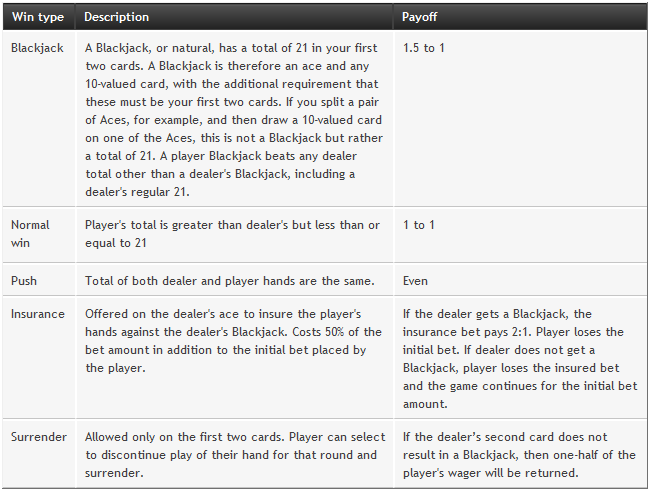 - Player Blackjack pays 3 to 2.